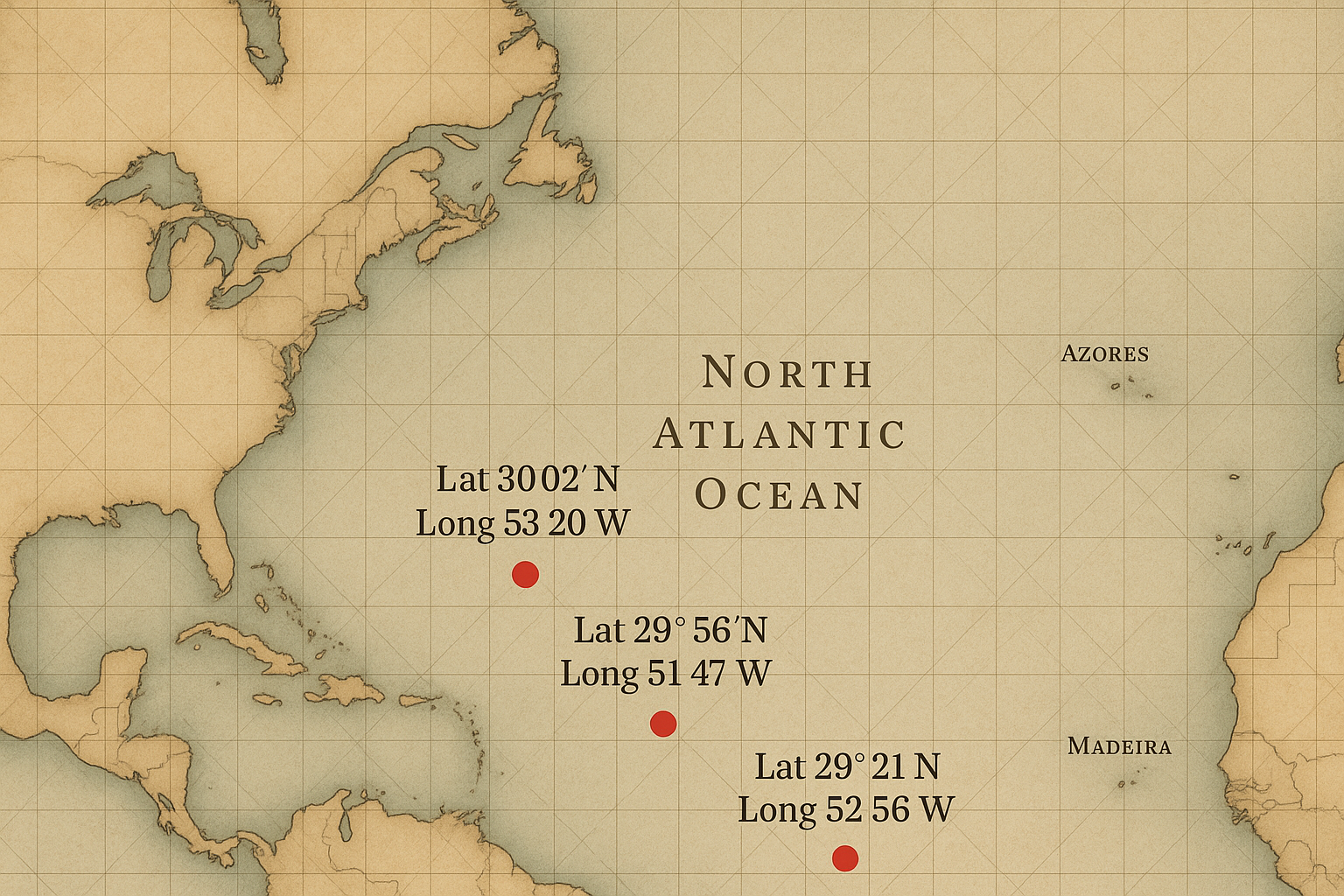 We have had moderate winds from S. steering E.S.E.. Commenced tarring down. Last night at 11 o’clock Capt Baxter and I were called and informed that the Kanaka John Lanton1 by name was dead. We upon deck and had him laid out on the Gangway Board. This morning he was sewed up and burned at 8 o’clock. Captain B requested me to read the chapter from the Bible. I read the 15th chapter of Job.2 We do not know what the matter was with him.