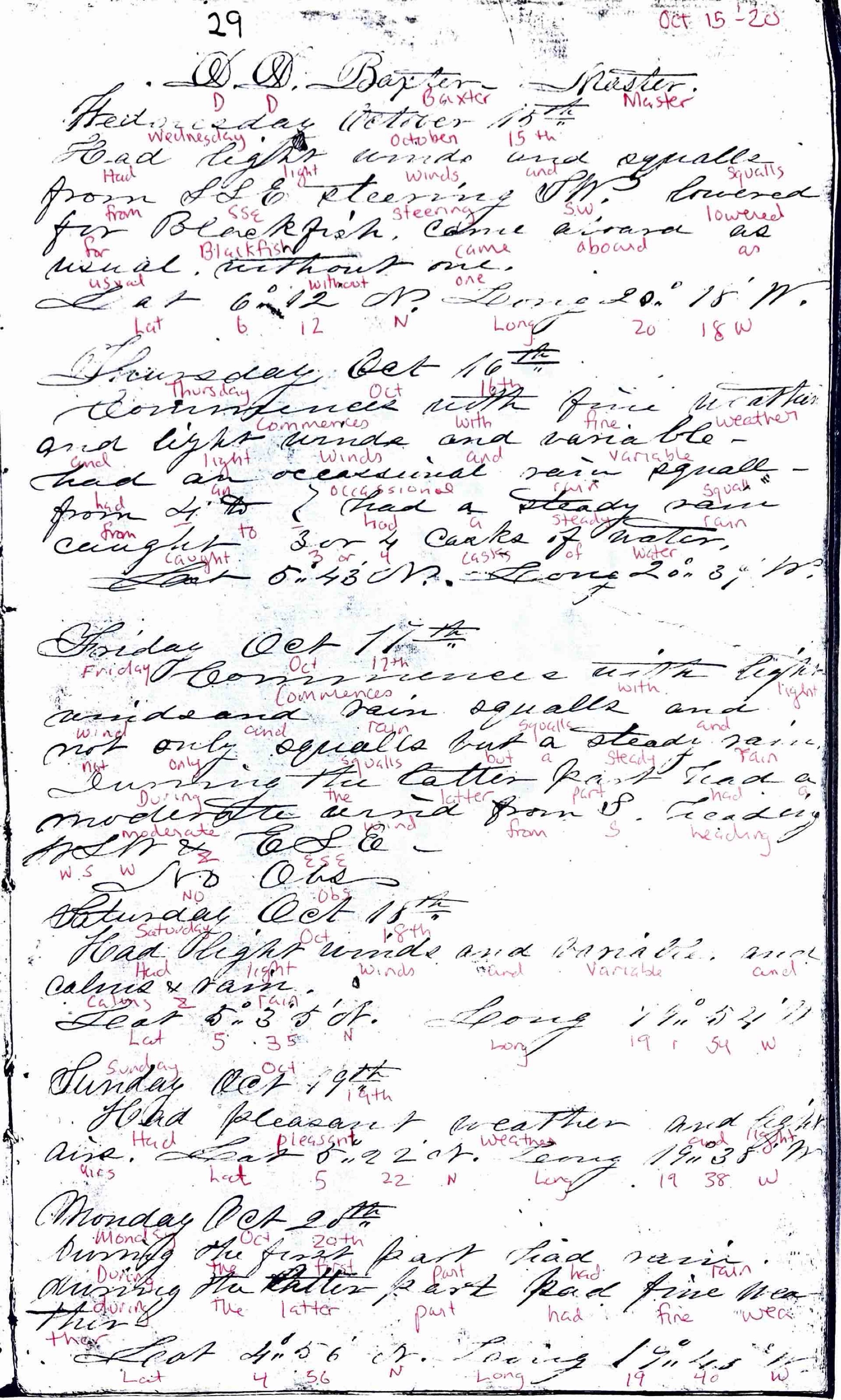 Had light winds and variable. And calms and rain.