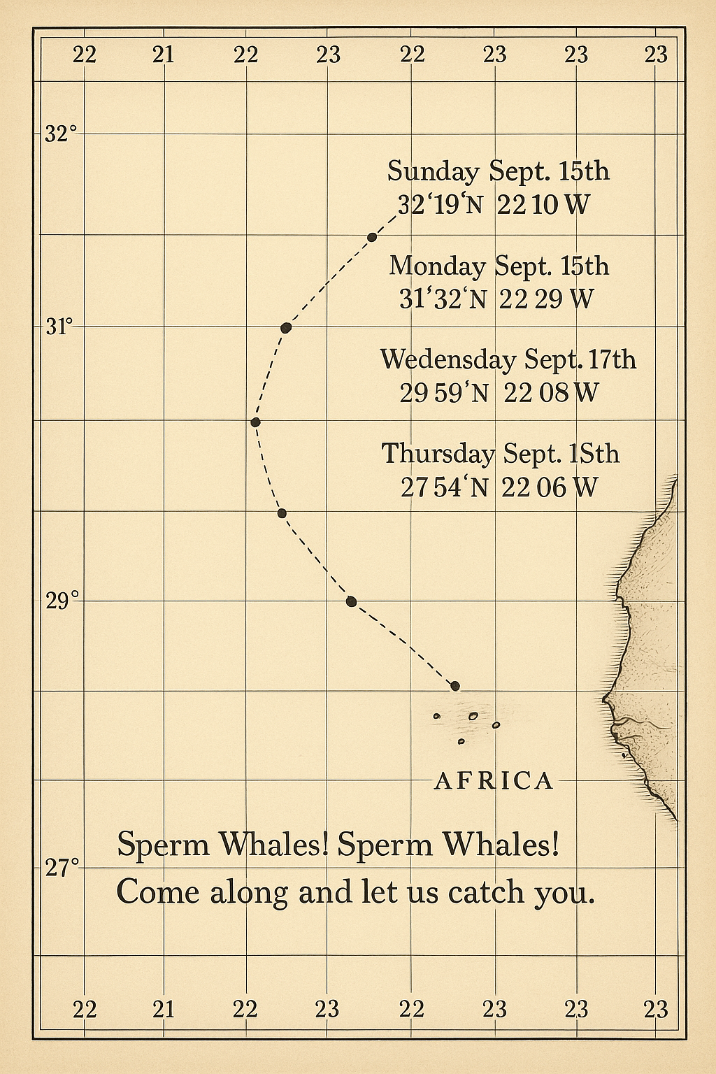 Lat 31 32 Long 22 29 W